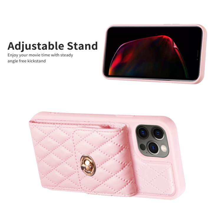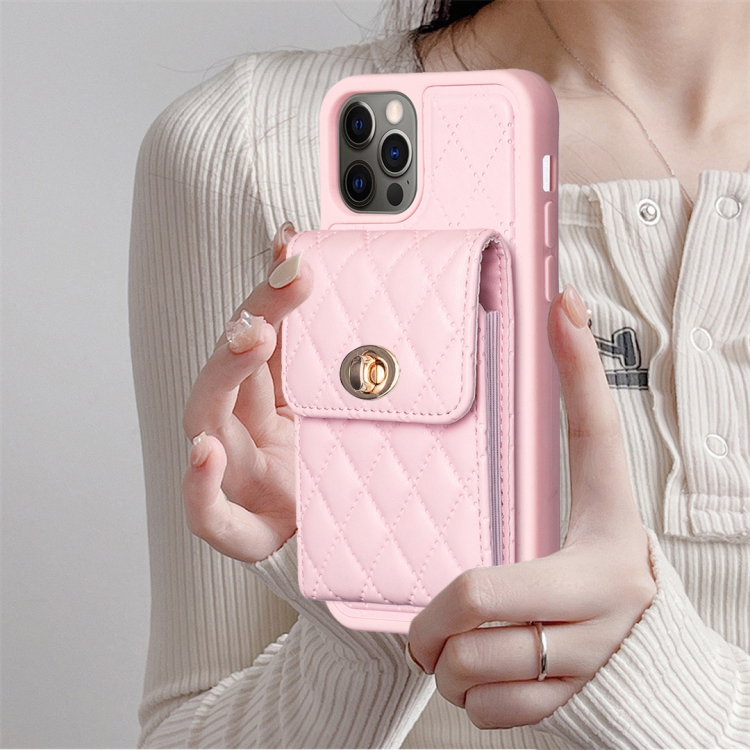 Funda Cartera para iPhone 12 Pro Max Rombico Vertical Hebilla de Metal Cuero (Rosa)