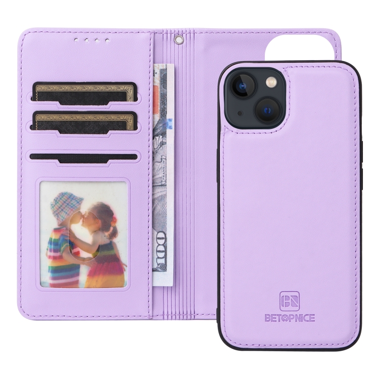 Funda para iPhone 13/14 Betopnice Bn-005 2 en 1 Cuero Desmontable (Púrpura Claro)