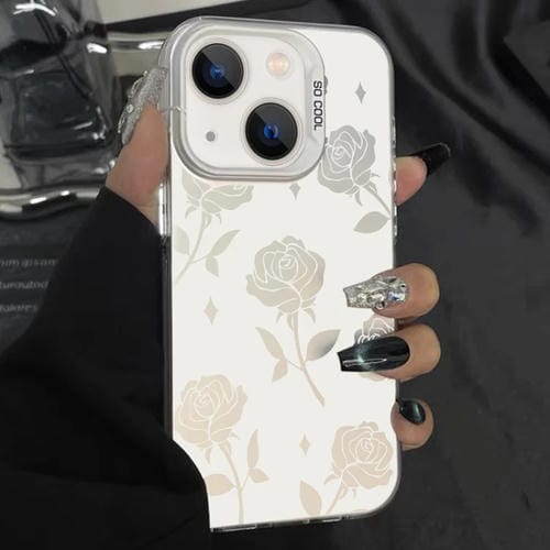 Caja de Teléfono Híbrida para iPhone 13 TPU para PC con Pintura Plateada (Blanco Rosa Hueco)
