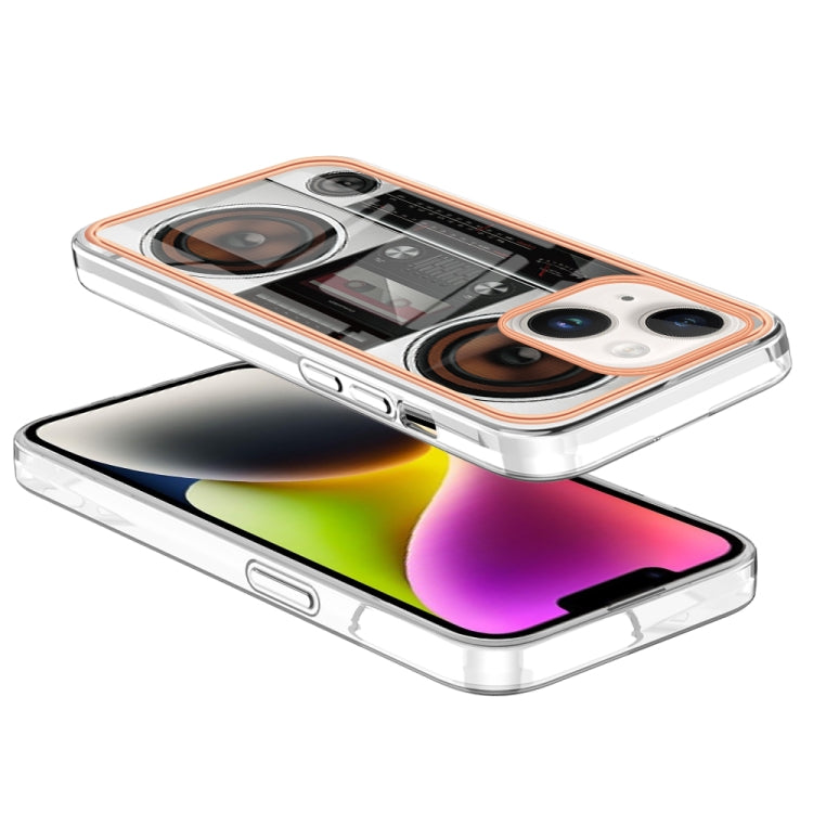 For iPhone 13 Electroplated Marble Double-sided IMD Phone Case (Retro Radio)