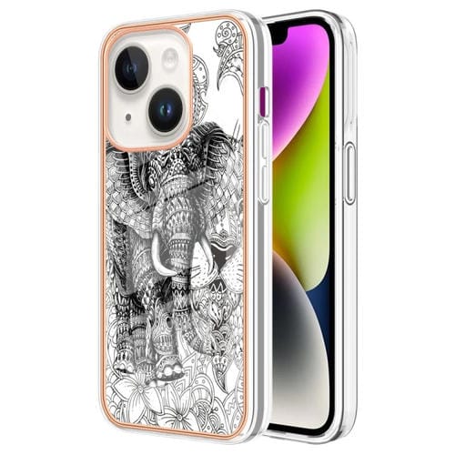 For iPhone 13 Double-sided IMD Marble Electroplating Phone Case (Totem Elephant)