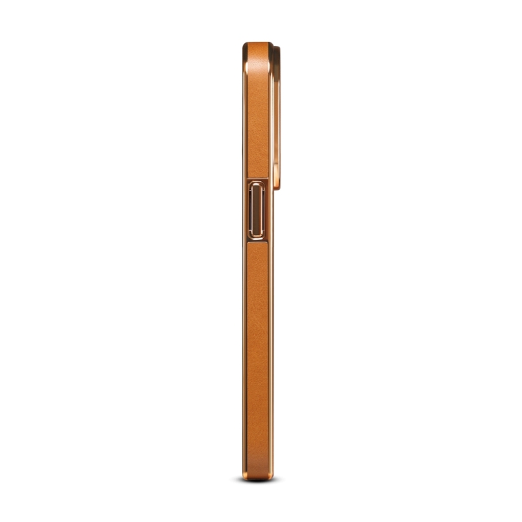 For iPhone 13 Denior Cowhide Leather Coated Phone Case (Khaki)