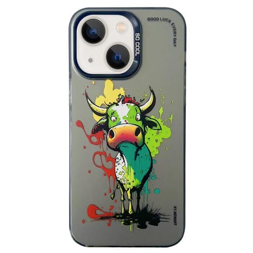 Funda para Teléfono iPhone 13 Serie Plateada Doble Capa Pintura al Óleo Animal (Zodiac Ox)