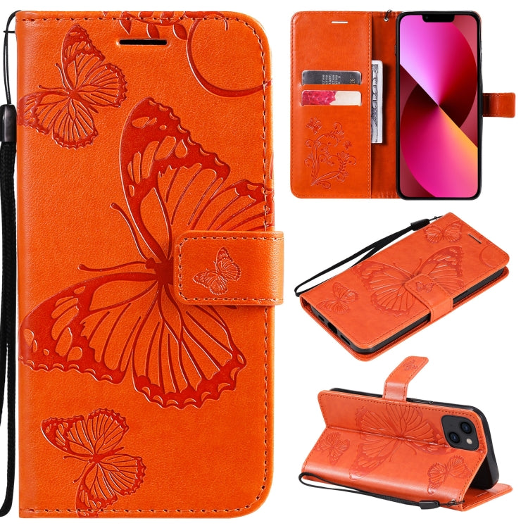 Estuche de Cuero para iPhone 13 con Tapa Horizontal Patrón Mariposa 3D Soporte Ranura Tarjeta Billetera Cordón (Naranja)