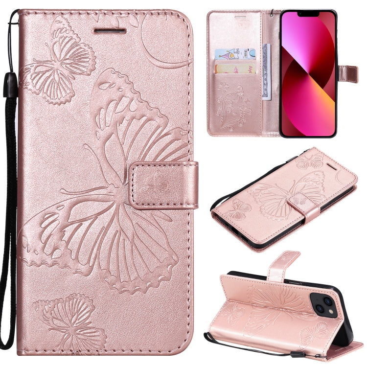 Estuche de Cuero para iPhone 13 con Tapa Horizontal Patrón Mariposa 3D Soporte Ranura Tarjeta Billetera Cordón (Oro Rosa)