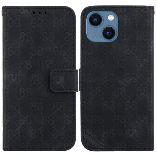For iPhone 13 Double 8-Shaped Embossed Leather Phone Case (Black)