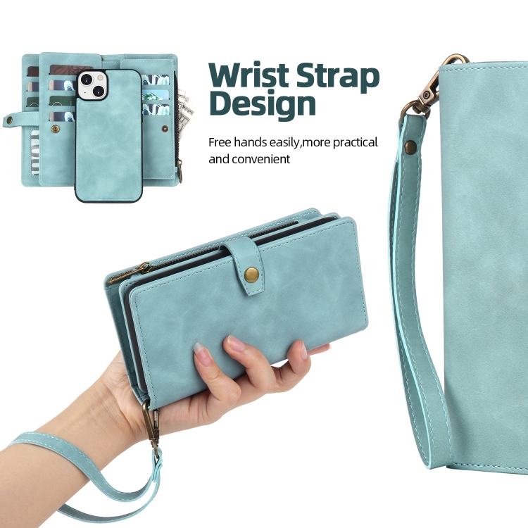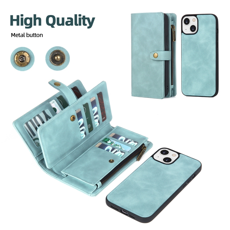 Funda de Cuero Magsafe para iPhone 13 Desmontable Billetera con Cremallera (Azul)