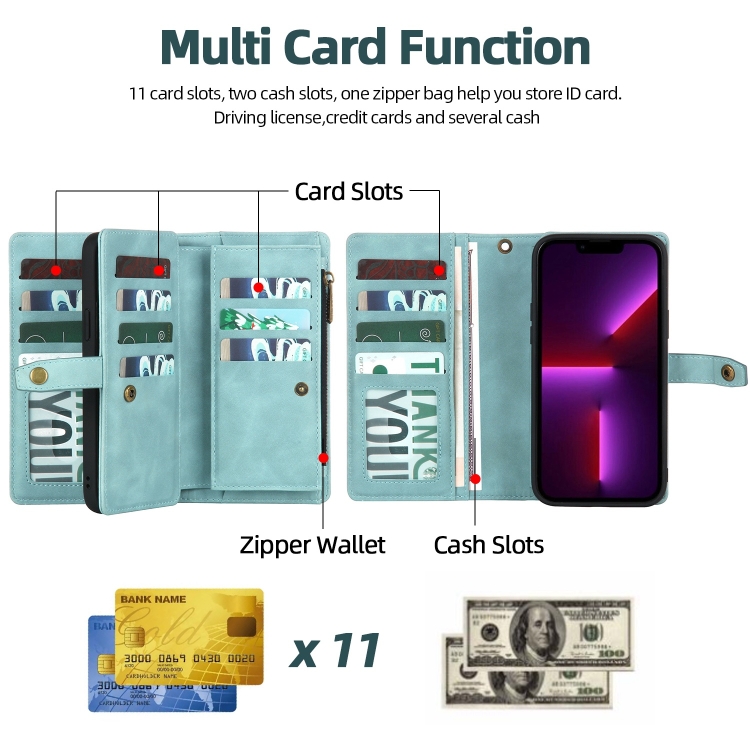 2. Función de billetera con múltiples tarjetas: Ranuras para múltiples tarjetas y 1 compartimento para efectivo con cremallera para almacenar sus tarjetas de crédito, efectivo o notas pequeñas para las necesidades diarias.