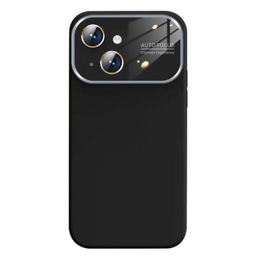 Funda de Teléfono para iPhone 13 con Ventana de Vidrio Grande de Silicona Líquida (Negro)