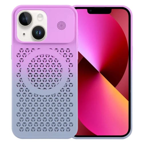 Funda Magnética para iPhone 13 con Aromaterapia y Enfriamiento de Panal (Gris Púrpura)