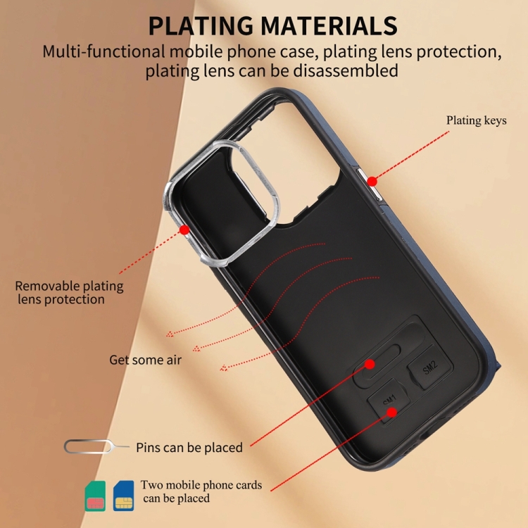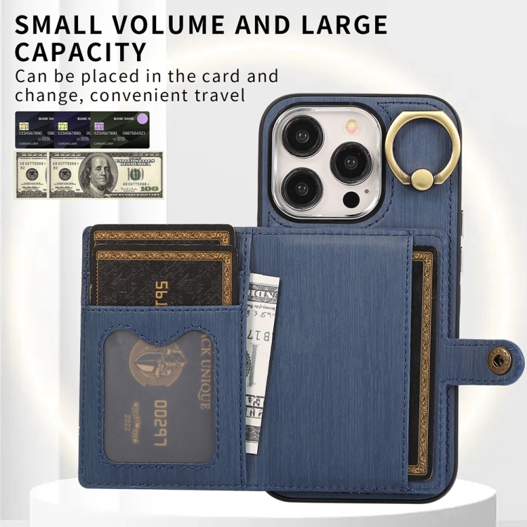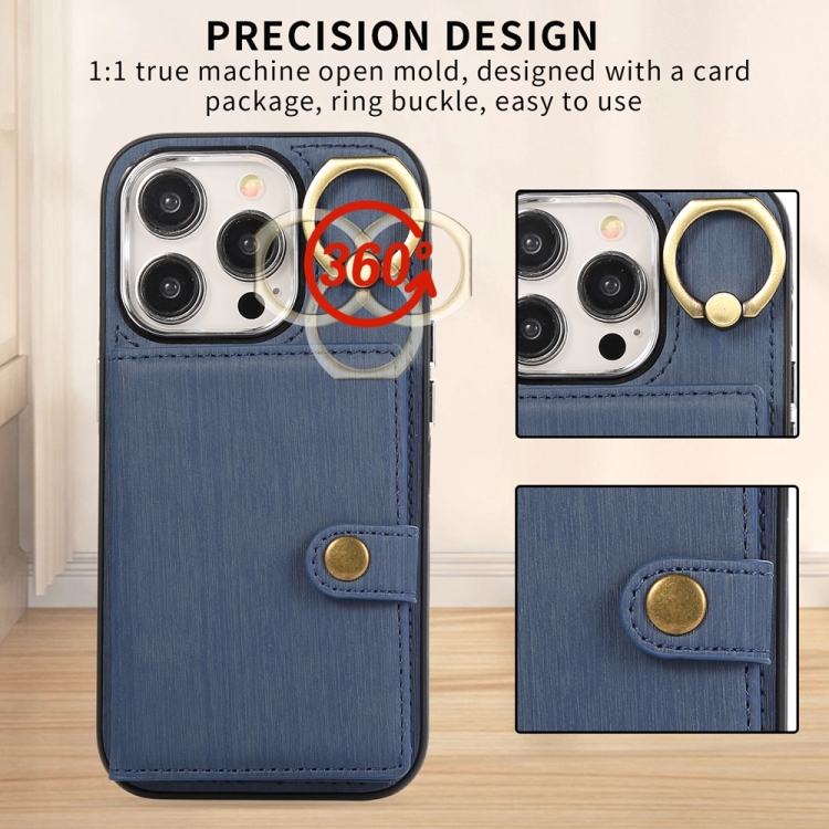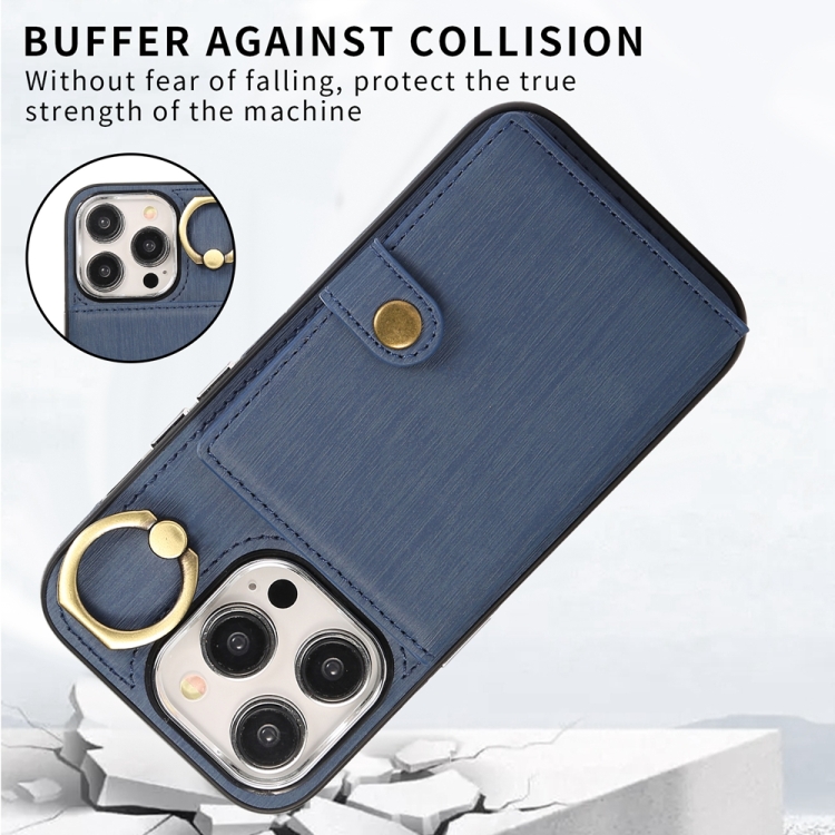 Funda para Teléfono iPhone 13 con Soporte para Anillo y Billetera con Textura Cepillada (Azul)