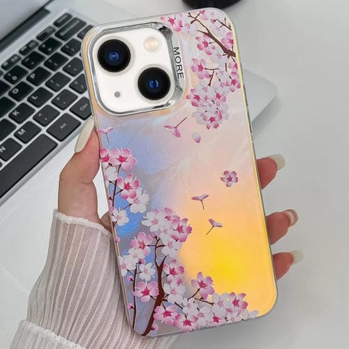 For iPhone 13 Electroplated Laser Flower Texture TPU Phone Case (Peach Blossom AH4)