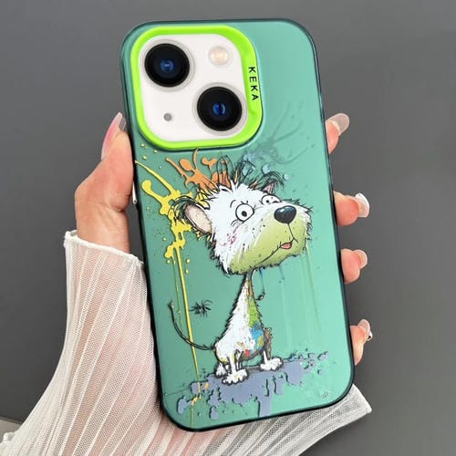 Funda para Teléfono iPhone 13 Imd Animal Graffiti TPU + PC Doble Cara (Perro Verde Blanco Derretido)