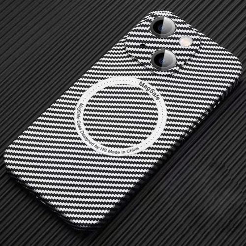 Funda Magnética para Teléfono iPhone 13 Magsafe Fibra de Carbono con Película para Lentes (Blanco Plateado)