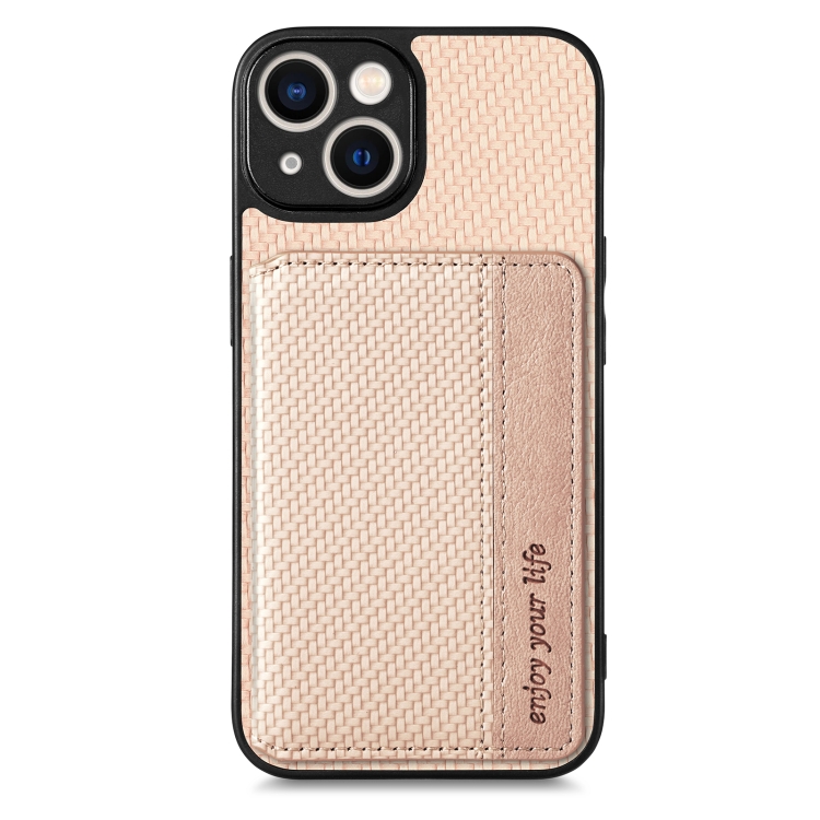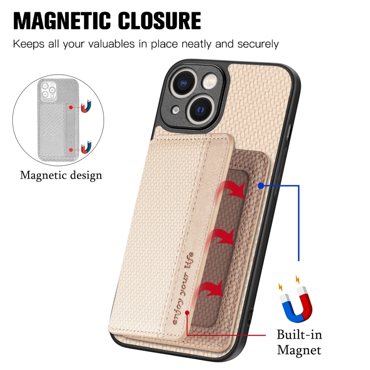 Caja de Teléfono para iPhone 13 Mini con Bolsa de Tarjeta Magnética de Fibra de Carbono (Caqui)