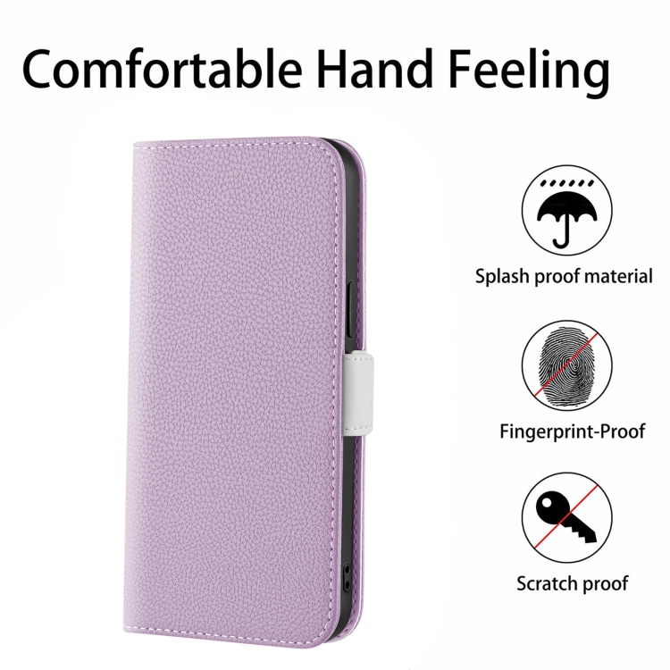 Funda para iPhone 13 Mini Candy Color Litchi Texture Cuero (Púrpura Claro)
