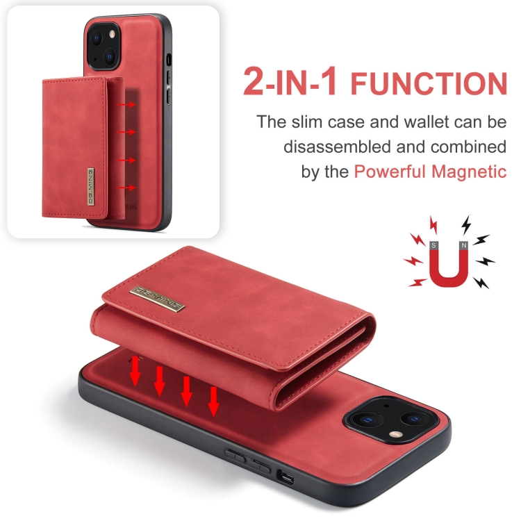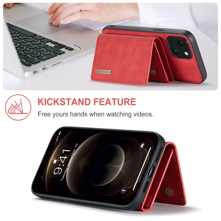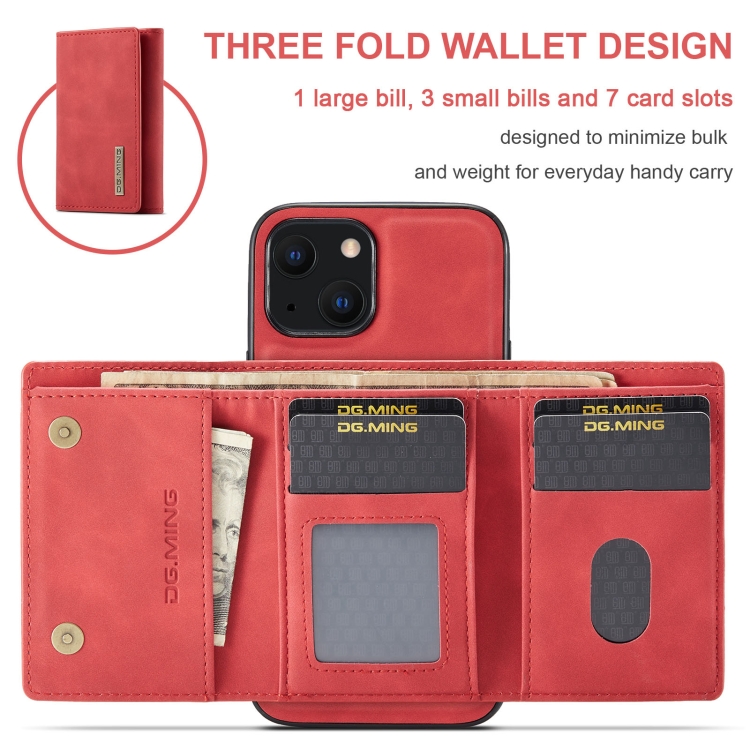 Estuche para iPhone 13 Mini Dg.Ming M1 Series 3-Fold Multi Card Wallet a Prueba de Golpes con Soporte (Rojo)