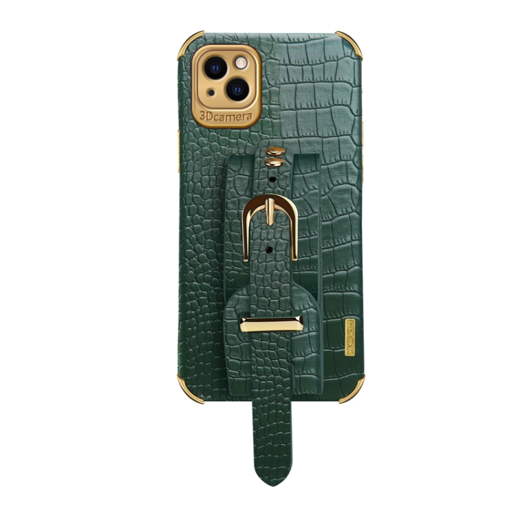 Estuche para iPhone 13 Mini Cuero TPU Galvanizado Patrón Cocodrilo con Correa (Verde)