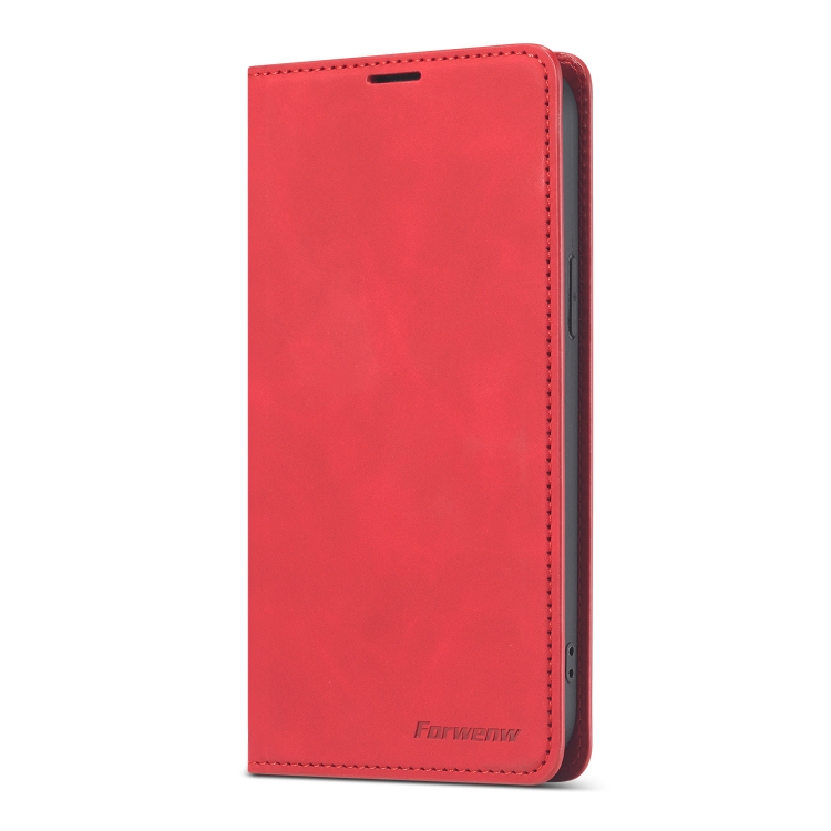 Estuche de Cuero FoRWenw Dream Series para iPhone 13 Mini con Tapa Horizontal Borde Magnético Soporte Ranura Tarjeta Marco Fotos Billetera (Rojo)