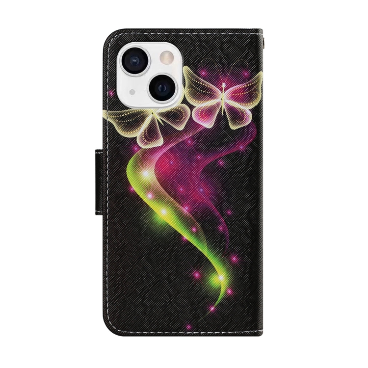 Funda de Cuero iPhone 13 Mini Patrón Dibujo a Color (Mariposa de Pareja)