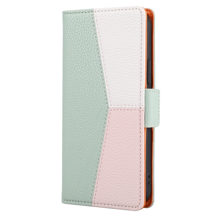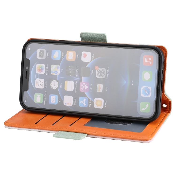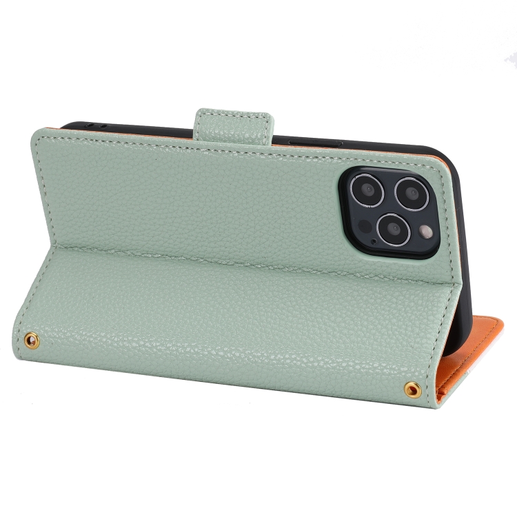 Funda de Cuero iPhone 13 Mini Litchi Texture con Ranuras para Tarjetas Soporte Billetera Marco de Fotos (Verde)