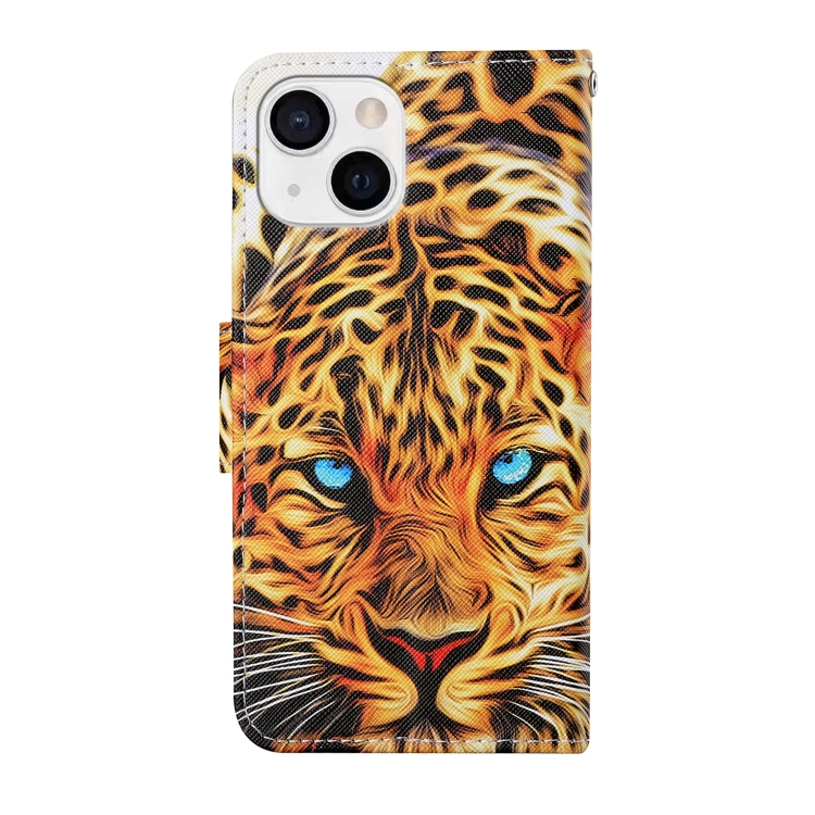 Funda de Cuero para iPhone 13 Mini Patrón de Dibujo Coloreado con Tapa Horizontal (Leopardo Amarillo)