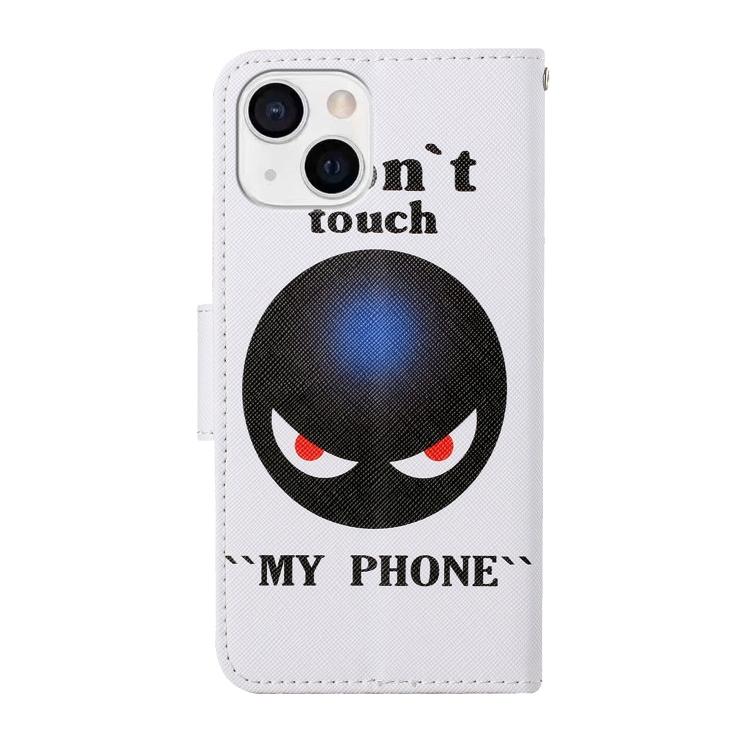 Funda de Cuero para iPhone 13 Mini con Tapa Horizontal Patrón de Dibujo Coloreado (Planeta Negro)