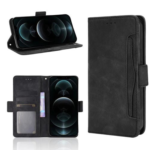 Funda para iPhone 13 Mini Skin Feel Calf Pattern Cuero con Tapa Horizontal Soporte Ranuras Tarjetas Marco Fotos (Negro)