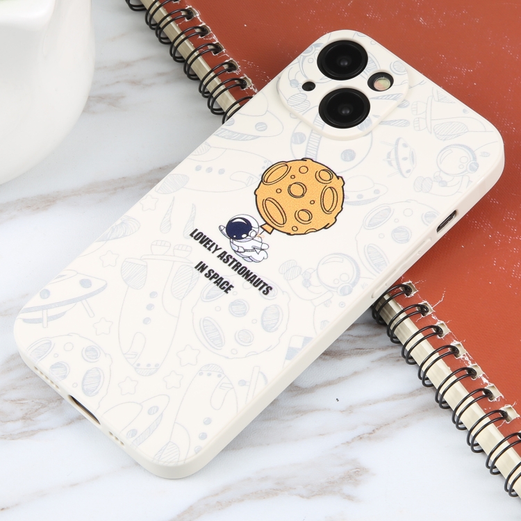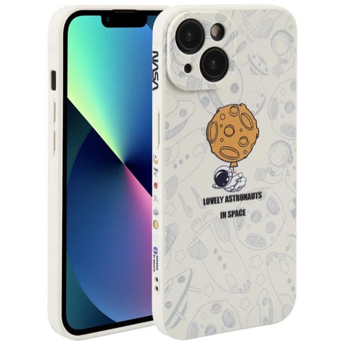 Funda de teléfono iPhone 13 patrón de Astronauta borde recto silicona (Blanco)
