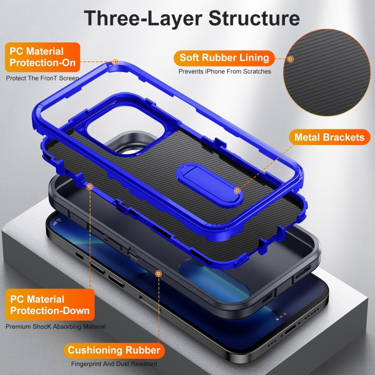 Estuche para teléfono iPhone 13 Pro 3 en 1 con soporte resistente (Azul Oscuro + Azul Zafiro)