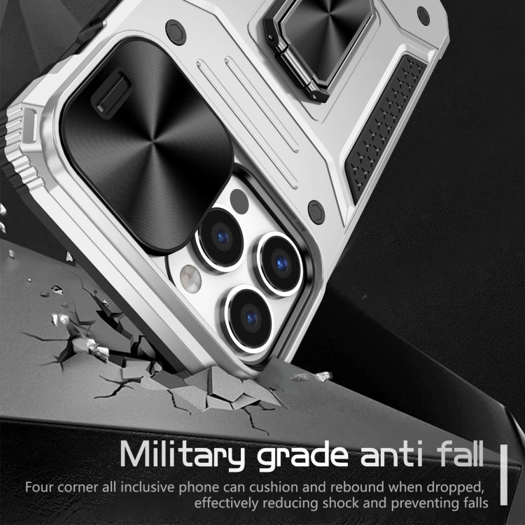 Funda para iPhone 13 Pro Camshield Robot TPU Hybrid PC Phone Case (Plata)