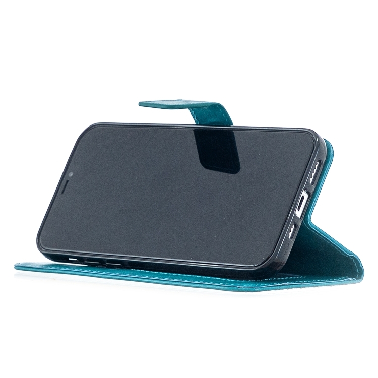 Funda de Cuero Crazy Horse para iPhone 13 Pro con Tapa Horizontal, Soporte, Ranuras para Tarjetas, Billetera y Marco de Fotos (Azul)
