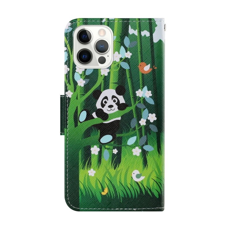 Estuche de Teléfono Cuero para iPhone 13 Pro con Patrón de Dibujo Coloreado (Panda)