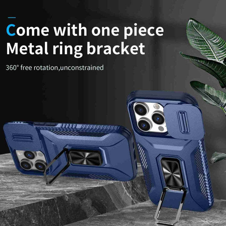 Estuche para Teléfono iPhone 13 Pro con Soporte Deslizante para Levas (Azul)