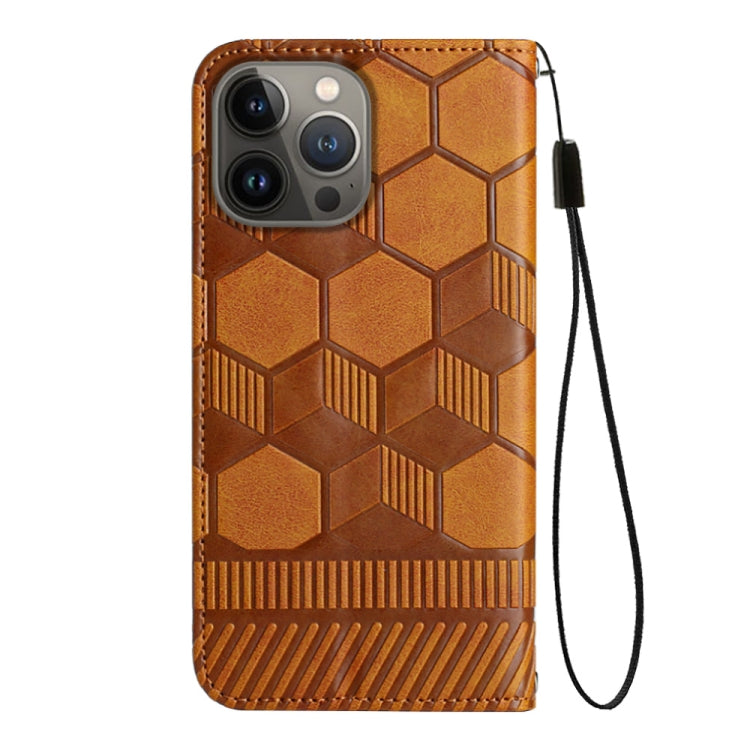 Funda de Teléfono para iPhone 13 Pro con Tapa de Cuero Magnético y Textura de Fútbol (Caqui)