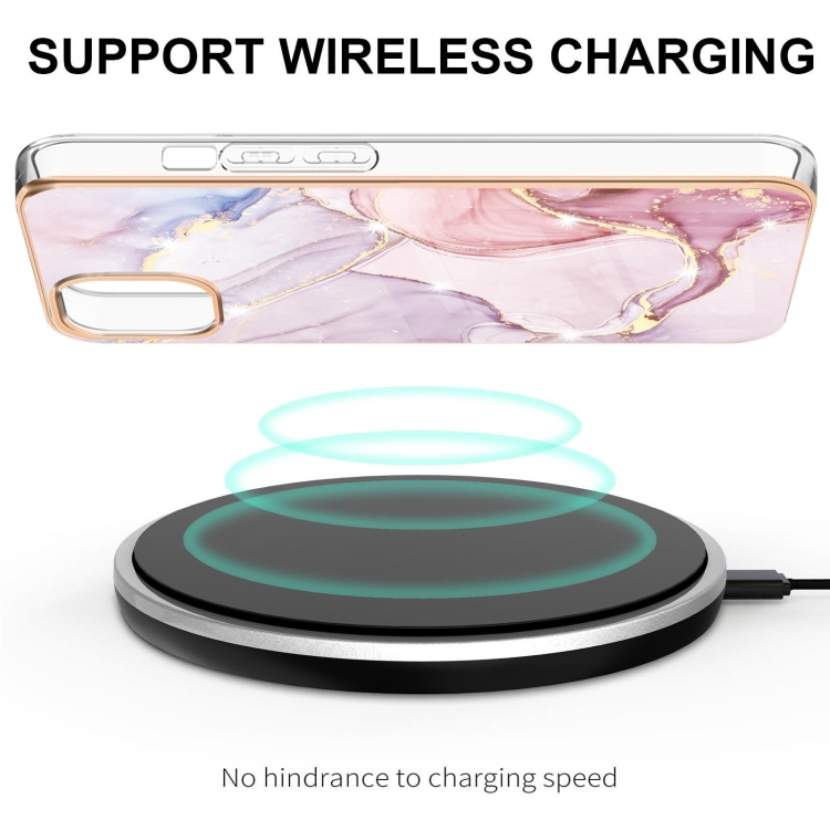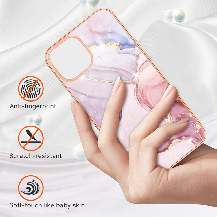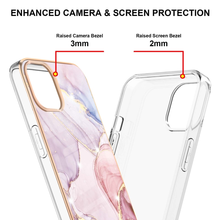 Estuche para iPhone 13 Pro Galvanoplastia Patrón de Mármol a Prueba de Golpes Imd TPU Doble Cara (Oro Rosa)