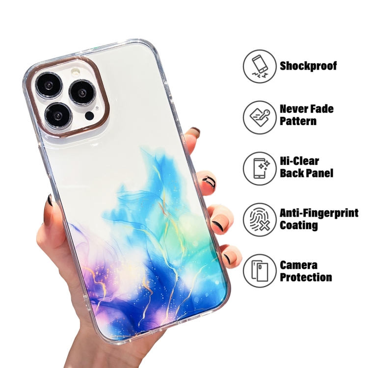 Funda para iPhone 13 Pro Gold Halo Marble Pattern Azul