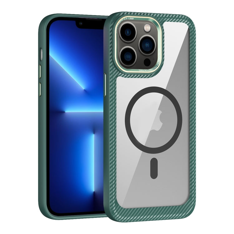 Caja para iPhone 13 Pro Magsafe Fibra de Carbono Panel Trasero Transparente (Verde)