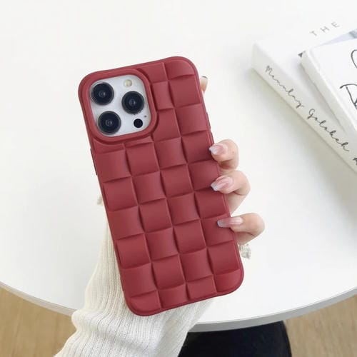Funda para iPhone 13 Pro Max 3D Cube Weave Texture Skin Feel (Rojo Vino)