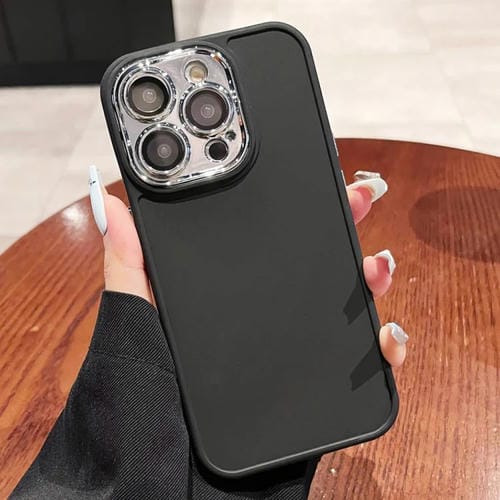 Caja de Teléfono para iPhone 13 Pro Max con Marco de Lente Galvanizada y Película de Lente (Negro)