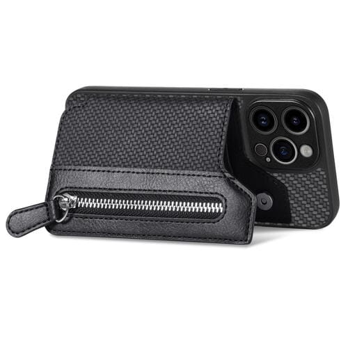 Funda para iPhone 13 Pro Max Carbon Fiber Horizontal Flip Zipper Wallet (Negro)