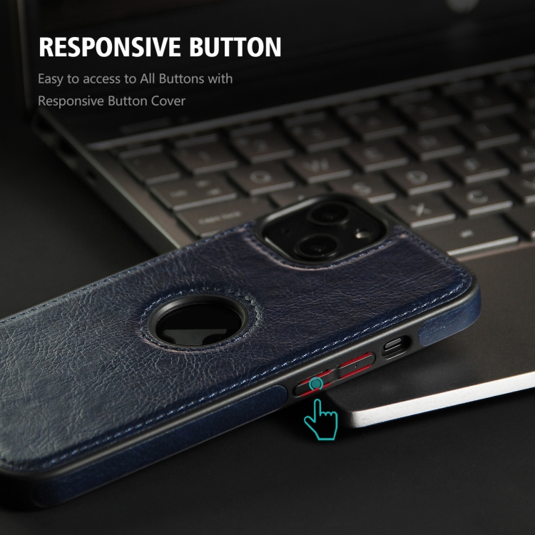Funda de Teléfono iPhone 13 Pro Max con Costuras Textura de Cuero (Azul)