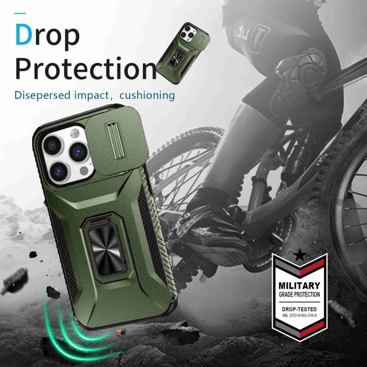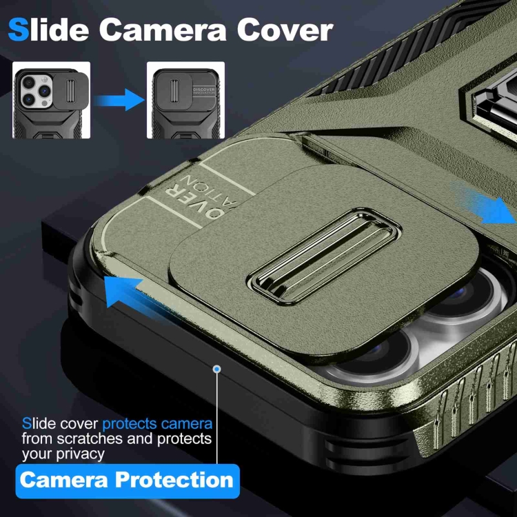 For iPhone 13 Pro Max Phone Case with Cam Shield Slide Holder (Alpine Green)