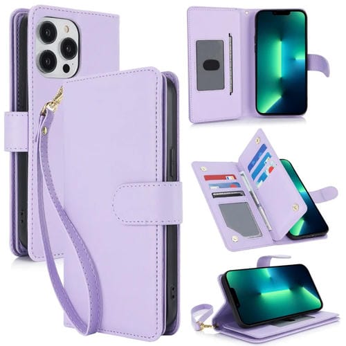 Funda para Teléfono iPhone 13 Pro Max Cuero Rfid Billetera MultiTarjeta (Púrpura Claro)
