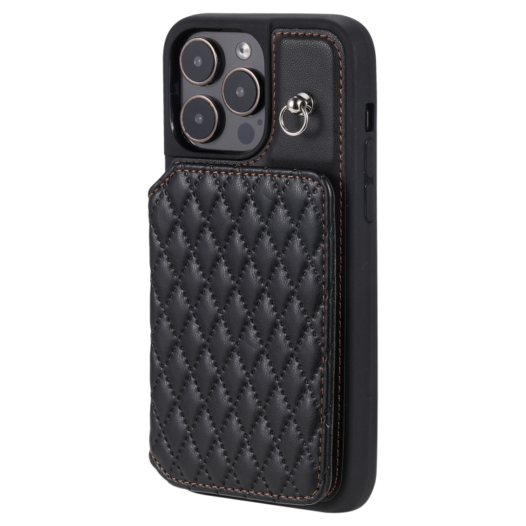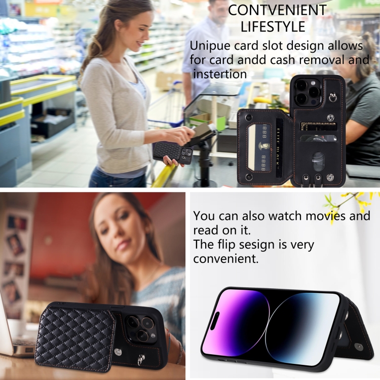 Funda para Teléfono iPhone 13 Pro Max Grid Texture Card Bag con Cordón (Negro)