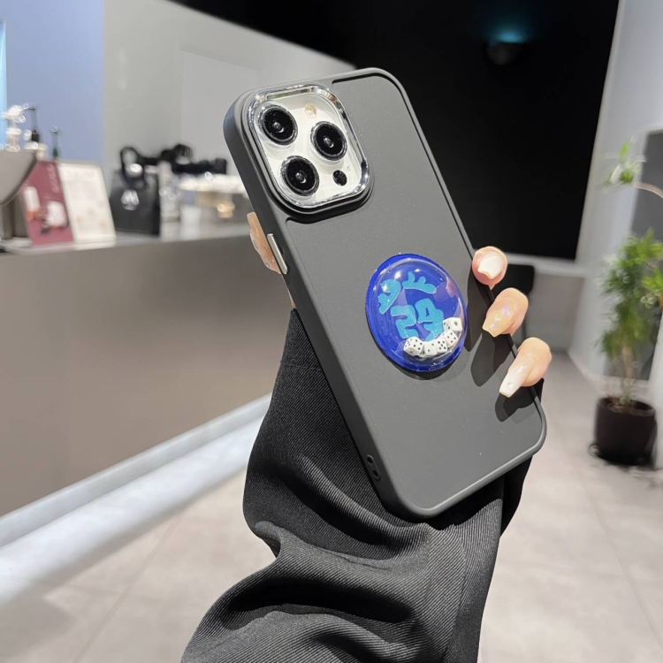 Funda para iPhone 13 Pro Max Lente Galvanizada Ring Dice Phone Case (Negro)