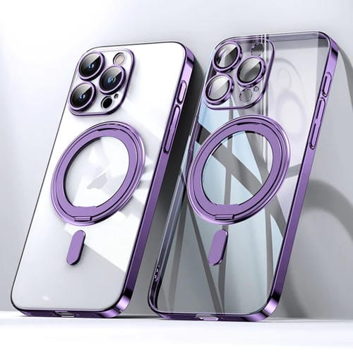 Funda para Teléfono iPhone 13 Pro Max Plating PC 360 Ring Holder Magsafe (Púrpura Transparente)