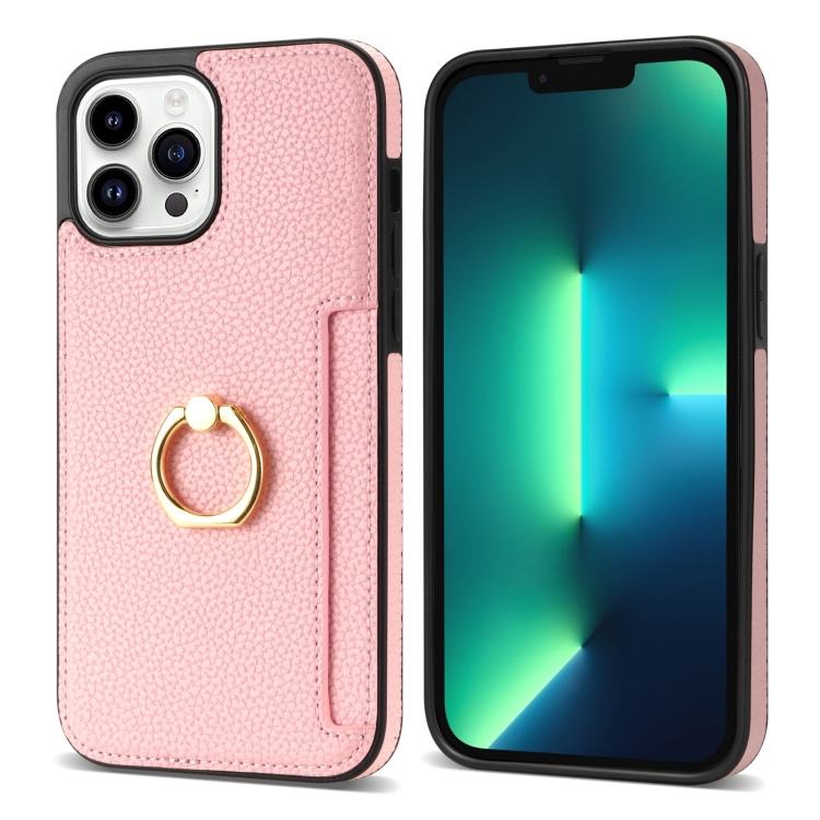 For iPhone 13 Pro Max Ring Card Litchi Leather Phone Back Case Cover(Pink)