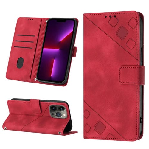 Estuche para Teléfono iPhone 13 Pro Max Skin-Feel Cuero En Relieve (Rojo)