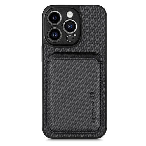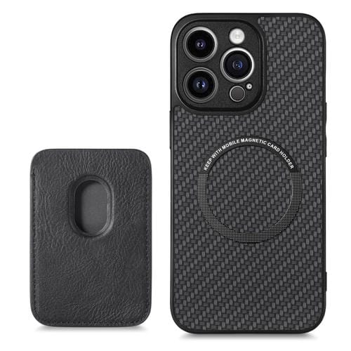 Funda para teléfono iPhone 13 Pro Max Cuero Fibra de Carbono Magsafe Magnética (Negro)